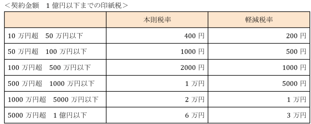 印紙税は収入印紙を契約書に貼付することで納税する税金です。契約金額によって印紙税は異なります。また、令和6年3月31日までの不動産売買契約書に記載されている金額のうち、10万円を超えるものには軽減税率が適用されます。